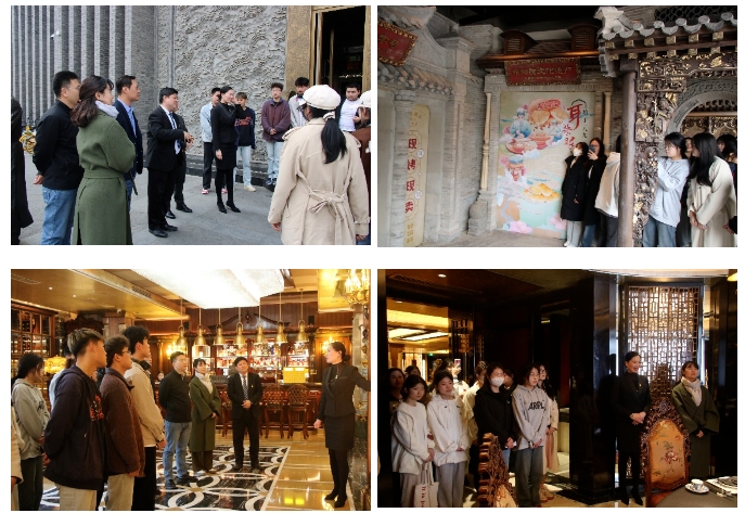 在参观过程中,beat365英国官方网站师生一行来到天津耳朵眼餐饮管理有限公司-鼓楼店,由企业负责人介绍了天津耳朵眼的历史文化沿革和现代化发展现状,带领师生参观了企业文化主题墙、主题餐厅、设施设备以及厨房操作间,同学们在企业负责人的讲解和引领下感受老字号企业的文化魅力,感叹百余年来天津耳朵眼的历史发展。