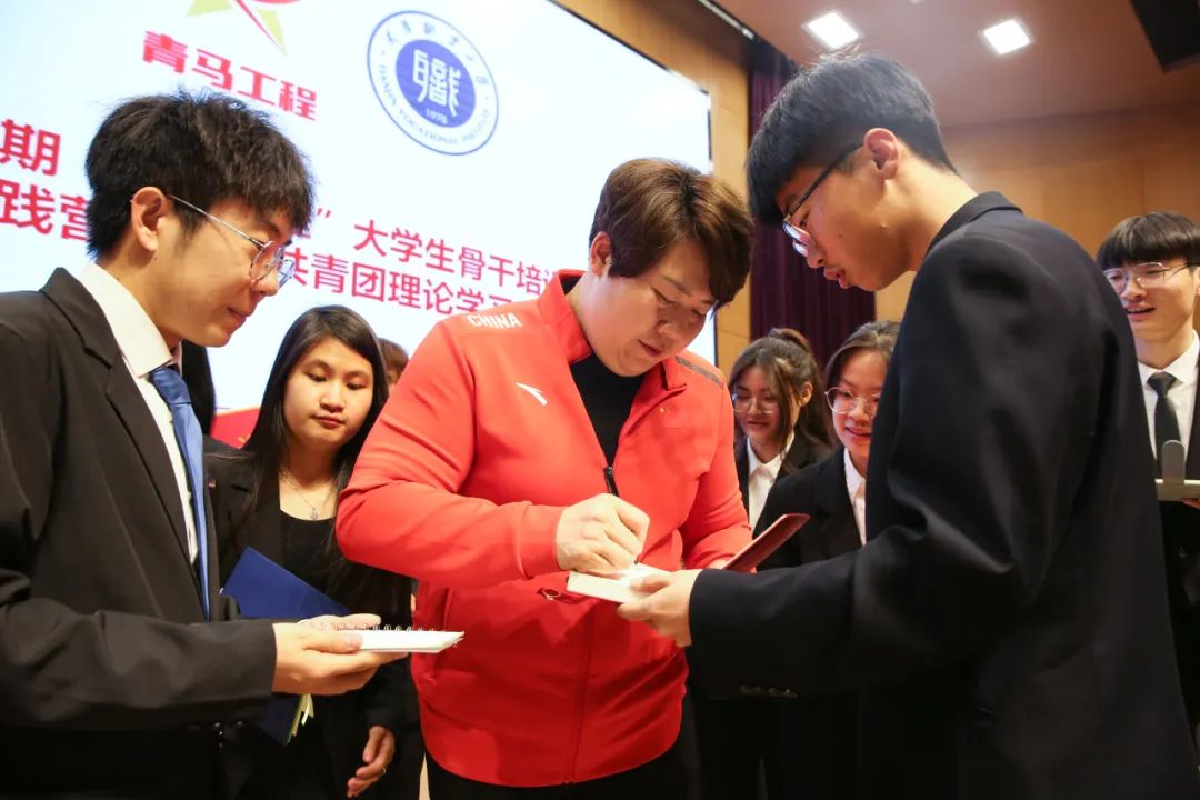 佟文老师在报告中从初识恩师走上柔道之路、梦想因坚持而圆满、年轻理应奋斗生活本该多彩等八个方面,分享了她的青春奋斗故事,特别是她在北京奥运会上“一分钟逆转夺金”的场景,让在场师生们深刻体会到了青年运动员的拼搏精神和奋斗力量,更加坚定奋斗的青春最美丽,拼搏的人生更精彩。整场报告过程中全场多次响起热烈掌声,师生深受感动、倍感激励,纷纷表示要向佟文老师学习,在奋斗中逐梦,彰显青春风采,在自己的领域各尽所能、发光发热,为实现中华民族伟大复兴的中国梦贡献力量。报告期间佟文老师与同学们亲切交流互动、解答相关疑问和困惑,会后跟大家合影签名留念,现场氛围温馨而热烈。