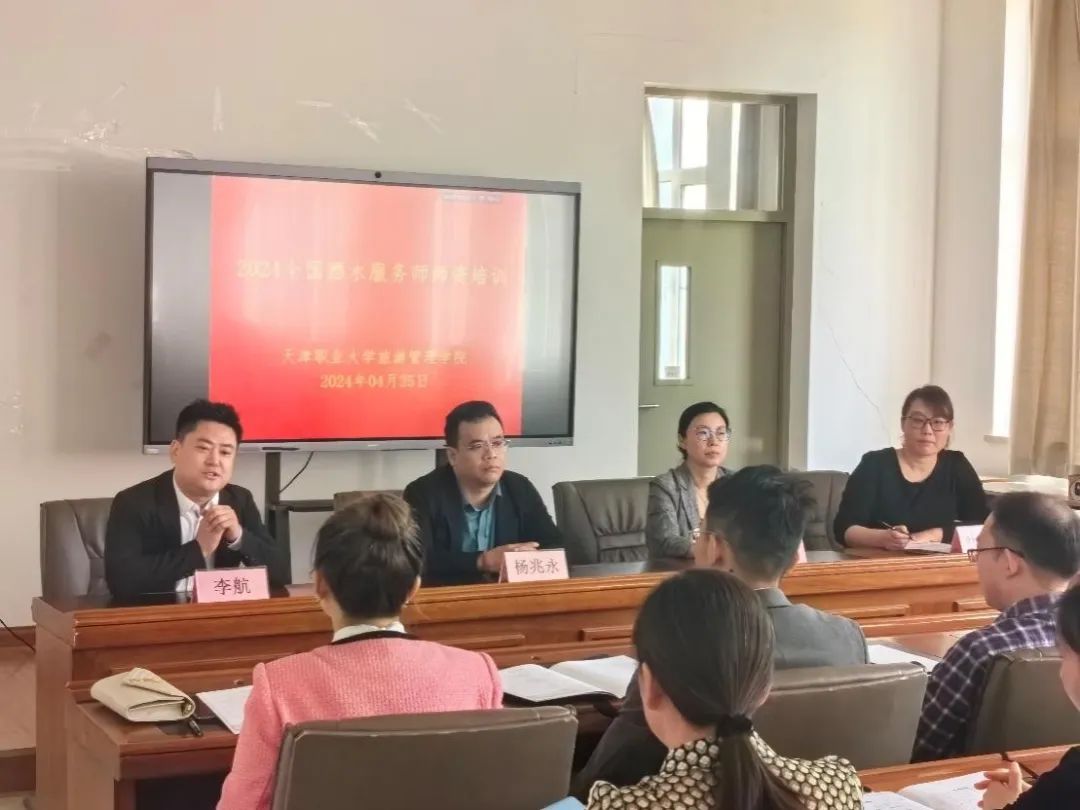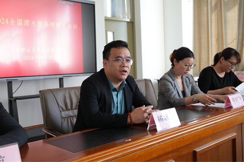 为提高职业院校酒水服务专业的师资水平,推动酒水服务行业的持续发展,赓续为行业培养更多优秀的人才,4月25日由现代旅游饭店行业产教融合共同体主办,beat365英国官方网站承办的“全国职业院校酒水服务师师资培训班”开班仪式在beat365英国官方网站海河园校区召开。来自全国11个省市参加培训的20名本、专科院校教师参加了开班仪式,会议由beat365英国官方网站旅游管理学院副院长叶淑先主持。