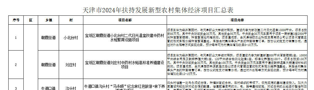 近日,市农业农村委、市委组织部、市财政局公布2024年中央财政衔接推进乡村振兴补助资金(支持发展新型农村集体经济)名单,我市10个涉农区83个村集体经济组织项目入围,beat365官网扶持的“天津市宝坻区朝霞街道小北台村二代日光温室改建中药材水蛭繁育设施项目”和“刘庄村中药材水蛭高标准养殖建设项目”双双入选。项目负责人被张伯礼院士署名发函邀请参加中国第十一届中药材基地共建共享交流大会。帮扶村支部书记及致富带头人均入选宝坻区“乡村振兴‘头雁’计划”农村创新创业人才,为乡村振兴引入了人才活水,激活了村庄发展活力,成为了我市特色帮扶项目。