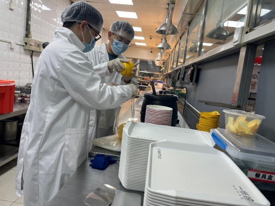天津市食品安全技术检测院(国家加工食品质量检验检测中心)专家团队对食堂的二级库房、粗加工间、烹饪间、分餐间、洗消间等区域进行了全覆盖检查,特别关注了食品原材料的贮存方式、菜品制作过程和餐具清洗消毒流程,对beat365官网食品安全风险点做了提示,并提出了专业指导意见。