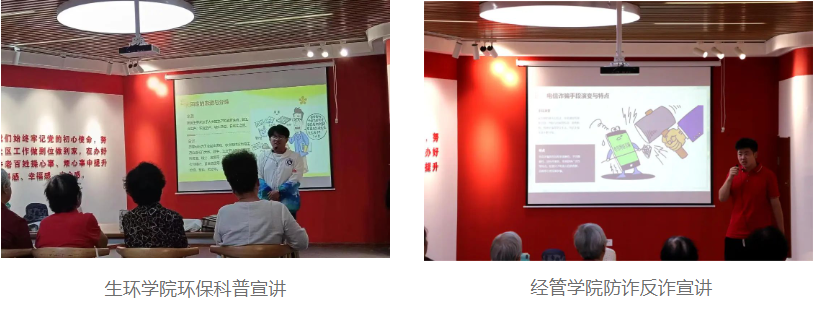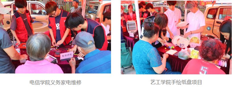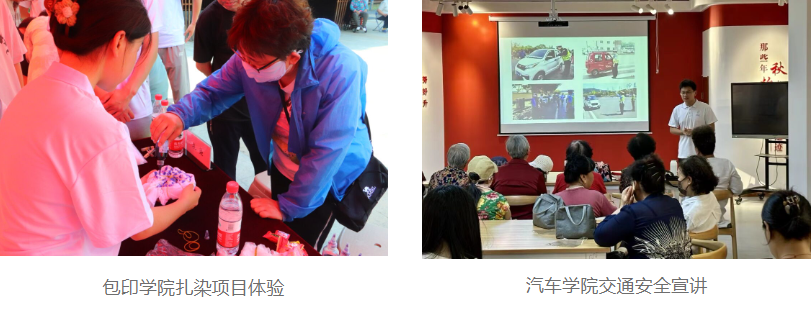 在活动中,同学们从敬老助老角度出发,精心设计了服务和宣讲项目内容,受到居民们尤其是老人们的一致认可和欢迎。机电学院和电信学院主要为居民们维修小家电,入户排除大型家电故障,同时讲述一些安全、科学使用家电的常识;视光学院和公管学院同学们为老人们当起了身心健康小卫士,分别提供视力检查、眼镜清洗,以及血压检测、颈部按摩服务,让老人们对自己的健康状态有了清晰认识,也得到了科学的处理建议;艺工学院和包印学院以文化传播为重点,分别带来手绘纸盘和非遗扎染项目,居民们在亲自体验操作过程中感受到中华文化的魅力,也看到了天职学子对文化传播、“非遗”传承的努力与坚持。生环学院、经管学院、视光学院、汽车学院通过室内宣讲的形式,分别带来环境保护、防诈反诈、爱眼护眼、交通安全为主题的科普内容。同学们设身处地从老年人的日常生活出发,用典型、详实的案例让老人们增强自我保护意识、养成良好生活习惯、积极关注环境保护,在普及科学知识的同时,也助力社区整体环境有效提升,赋能城市治理现代化。