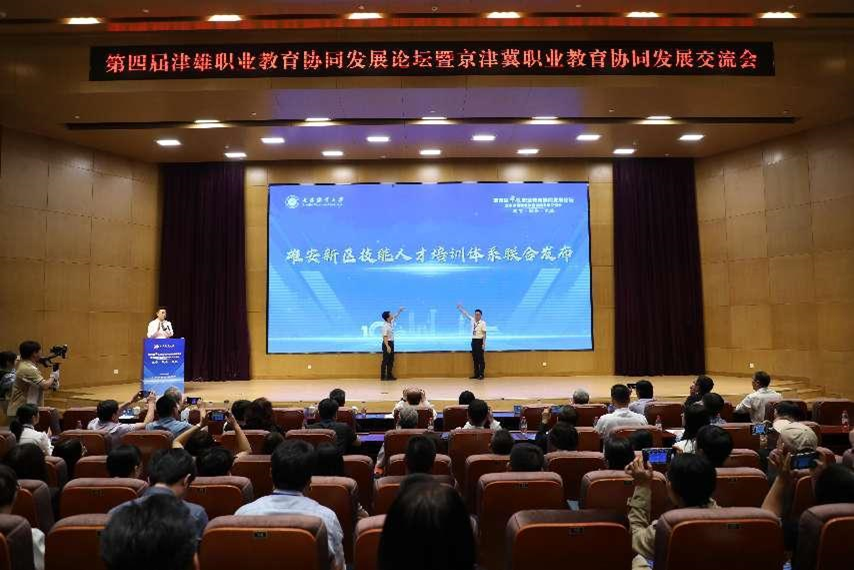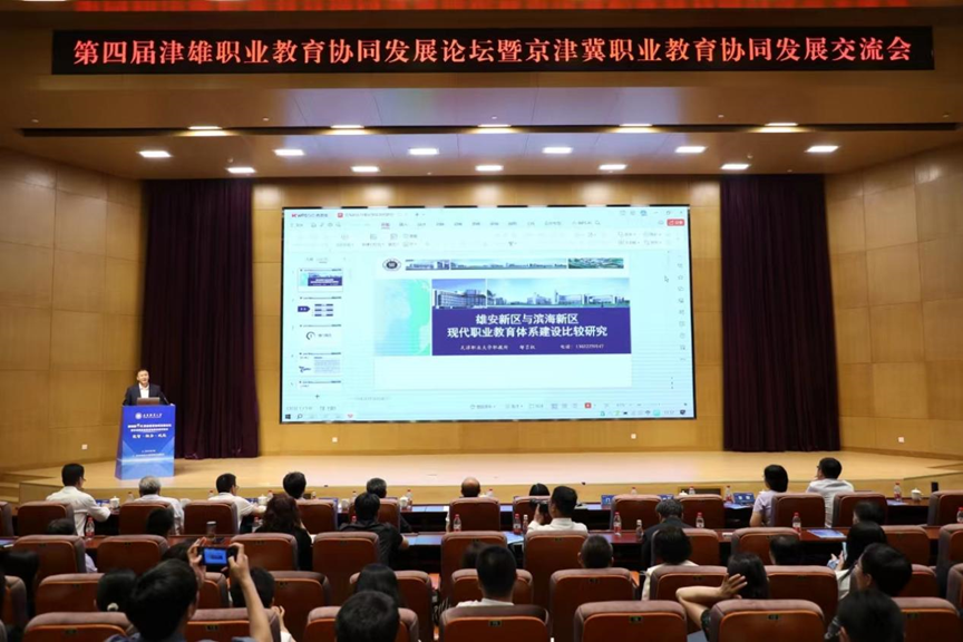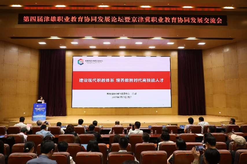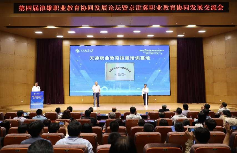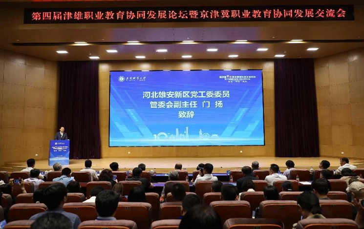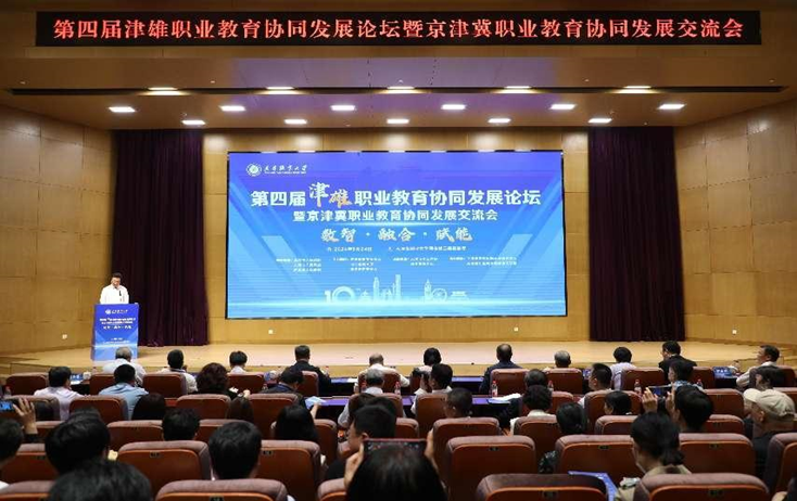 为深入贯彻落实习近平总书记关于京津冀协同发展和高标准高质量推进雄安新区建设的重要指示批示和精神,持续发挥天津职业教育资源优势,深化津雄职业教育发展联盟建设,2024年5月24日,在京津冀协同发展战略实施10周年之际,第四届津雄职业教育协同发展论坛暨京津冀职业教育协同发展交流会在beat365官网隆重举行。教育部职业教育发展中心副主任黄辉,天津市委教育工委委员、市教委副主任罗延安,河北雄安新区党工委委员、管委会副主任门扬,京津冀三地教育相关部门领导以及beat365官网党委书记夏静波出席会议。津雄职业教育发展联盟、京津冀“双高计划”建设联盟和天津市高职院校等40余所三地中高职院校管理干部、教师及合作企业代表200余人参加会议,会议由吴宗保校长主持。