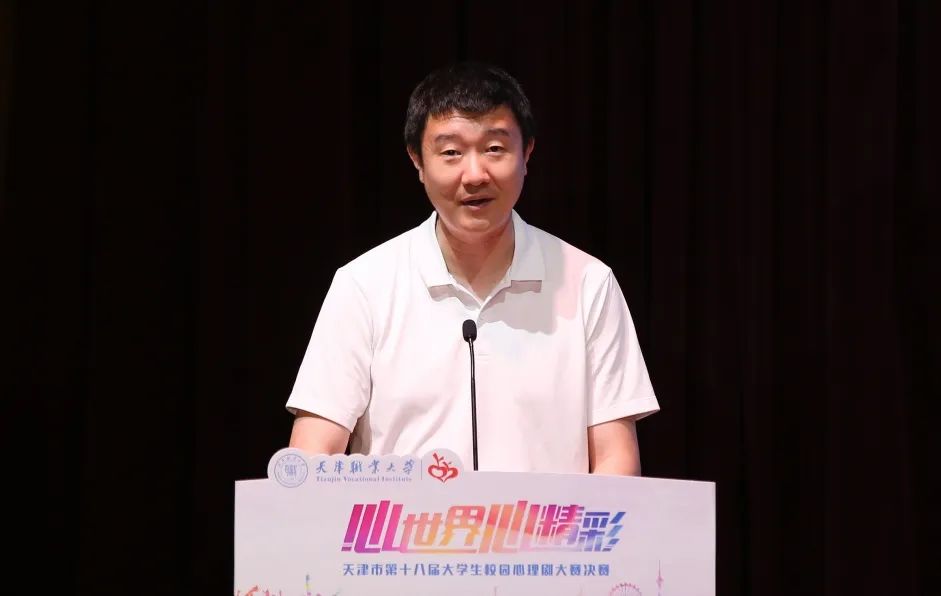 决赛中,天津市学生心理健康教育发展中心副主任周广东、天津市学生心理健康教育专家委员会秘书长吴捷教授、天津公安警官职业学院刘援朝教授、天津医学高等专科学校李合群教授、天津医科大学毛富强教授、天津市安定医院陈清刚教授、南开大学学工部部长何璟炜、天津理工大学学工部副部长姜琨出席活动并担任专家评审,beat365官网党委副书记李旭出席并致辞。来自全市各高校320余名师生代表到场观赛。