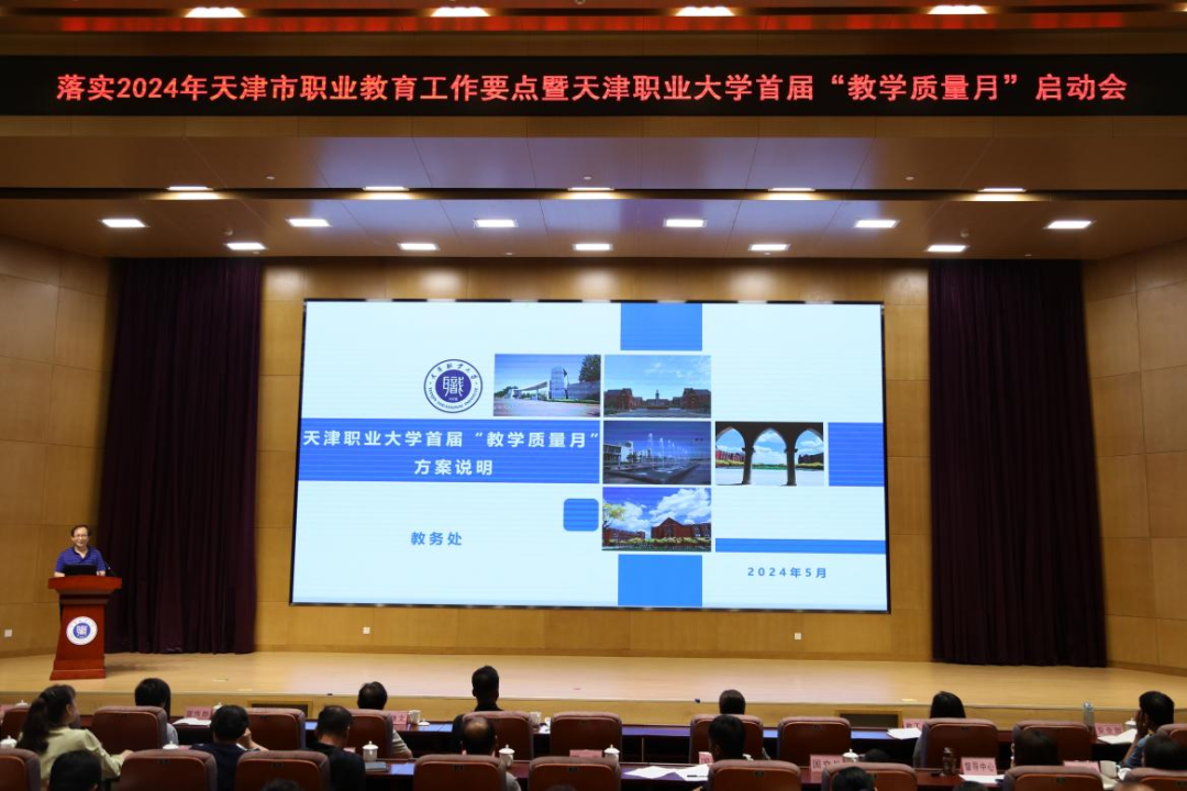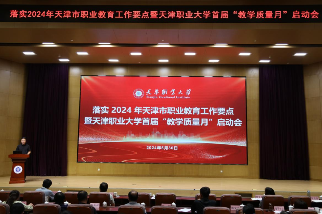 为推动落实《关于深化现代职业教育体系建设改革的意见》《2024年天津市职业教育工作要点》和beat365官网2024年党政工作要点,聚焦职业教育“五金”新基建建设,推进实施人才培养质量跃升计划和现代职业教育体系建设创新发展计划,5月30日下午,在图书馆报告厅召开了落实2024年天津市职业教育工作要点暨beat365英国官方网站首届“教学质量月”启动会。学校相关职能处室负责人、各教学院(部)院长(主任)、副院长(主任)、教学秘书、专业负责人及教务处全体人员参会,吴宗保校长,冯艳文副校长出席会议,会议由教务处副处长李海斌主持。