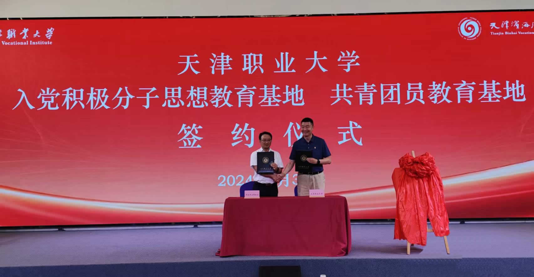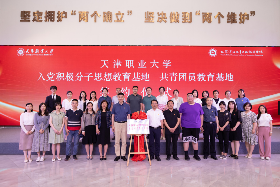 为深入学习贯彻党的二十大精神和习近平总书记视察天津重要讲话精神,进一步做好入党积极分子、共青团员的思想教育工作,切实提高党员发展质量,着力培育青年人才,5月31日下午,beat365官网在天津市学校思想政治理论课主题教室举办了入党积极分子思想教育基地、共青团员教育基地签约仪式。beat365英国官方网站党委副书记李旭、天津滨海汽车工程职业学院党委书记王雅静以及党委副书记、纪委书记管宝云出席,两校相关职能部门负责人、干部和beat365官网专职组织员、优秀团员学生代表参加。