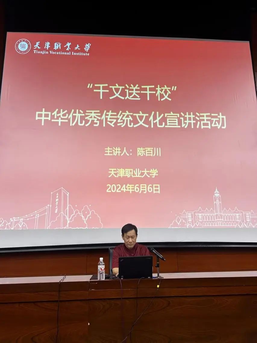 6月6日下午,beat365官网在海河园校区报告厅举办了“千文送千校”中华优秀传统文化宣讲活动,我国国学教育家、书法家、人社部全国人才中心党支部书记、中国优秀传统文化项目“千文送千校”发起人陈百川老师为师生们带来了一场深入浅出、精彩纷呈的国学盛宴。海河园校区全体学生工作队伍教师和旅游管理学院、公共管理学院学生共计400余人参加了本次活动,学工部负责人参加并主持宣讲会。