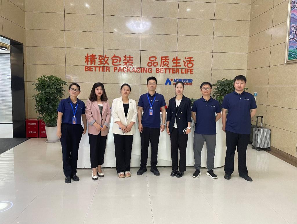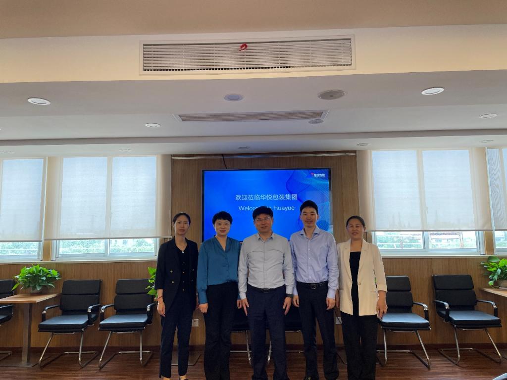 5日上午,调研组走访了华悦包装。共同体理事长宋奎运介绍了中国物流、中国包装业务领域布局与发展规划,表示发展绿色包装是中国包装作为国资央企必须承担的社会责任,会积极发挥国家队作用,共同建设共同体,全力推动包装行业绿色化、循环化、减量化。华悦包装董事长助理黄伟圻表示,企业长期以来在包装行业“膜”技术领域开展创新,希望借助共同体平台,在人才培养和技术创新方面积极参与产教融合。双方就共同体服务范围、包装行业科技成果奖、包装标准、培训教育、包装循环利用、塑料降解等方面内容进行交流讨论。调研组同时实地参观了生产车间。