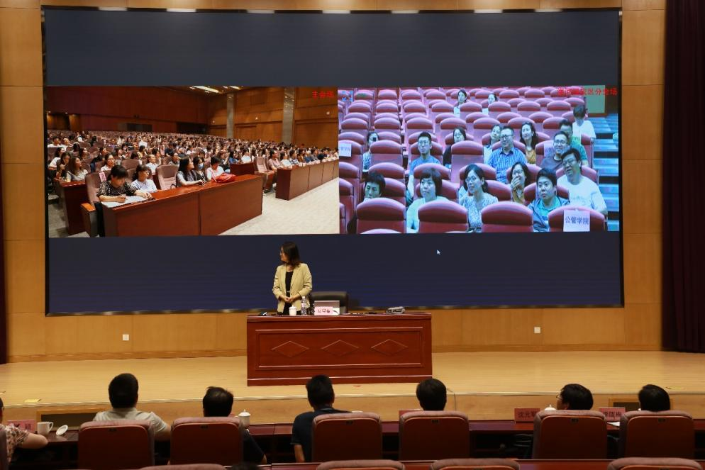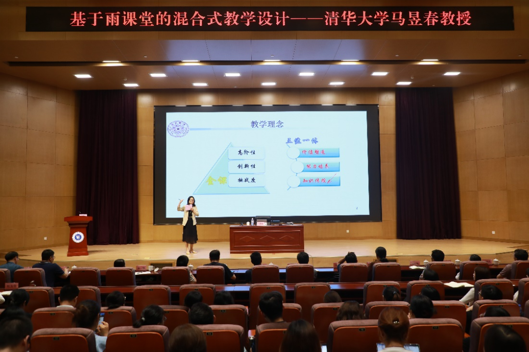 为进一步推动beat365官网混合式教学实施,落实教学质量月总体安排,提升beat365官网教师混合式教学设计能力。6月19日现代教育中心、教工部、教务处联合举办教学质量月系列活动之混合式教学实施培训会。邀请清华大学教授、清华大学融合式教学指导专家组副组长、北京市青年教学名师、国家级精品在线开放课程《组合数学》负责人马昱春教授来beat365官网作了《基于雨课堂的混合式教学设计》的专题讲座。会议采取主校区和海河园校区两个会场同步开展,教务处副处长李海斌主持,学校各学院(部)分管教学工作副院长(副主任)、教学秘书、专业负责人、骨干教师代表以及教务处、现代教育技术中心、教工部、督导中心全体工作人员,近300人聆听了报告