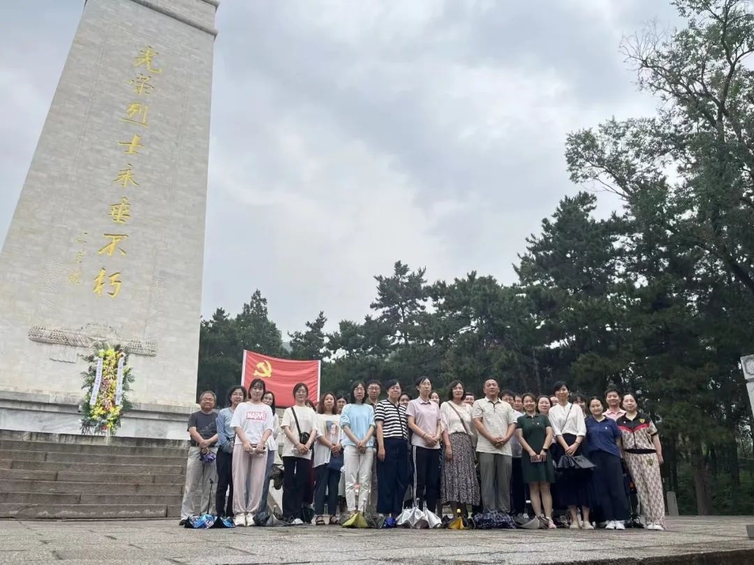 在盘山革命纪念馆,党员教师们参观事迹展厅,聆听红色故事,领略战斗英雄的精神风采。一张张照片,一件件展物,使大家深受教育。随后,教师们瞻仰革命烈士纪念碑,饱含深情地唱起《中华人民共和国国歌》,并向烈士默哀,以表达对革命先辈崇高的敬意。在纪念碑前、党旗下,老师们重温入党誓词,庄严宣誓。教师们徒步完成红色十里长廊征程,寻找当年革命先烈英勇战斗的踪迹,学习他们为革命、为民族、为信仰浴血奋战、毫不退缩的精神。教师们纷纷表示,将永远铭记烈士们的英勇事迹,将继承和发扬革命先烈的优良传统,严守党的纪律,爱岗敬业、勇毅前行,不断精研业务,提升学科影响力,为学校的高质量发展努力奋斗。