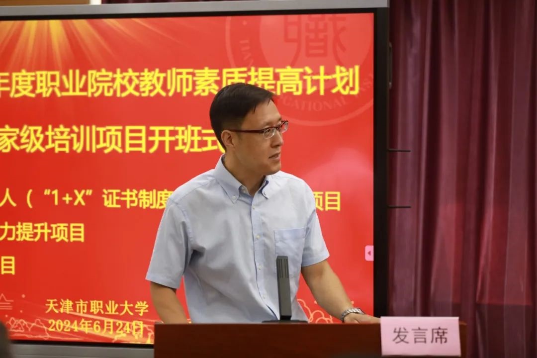 2024年6月24日,由beat365英国官方网站承办的天津市2024年度职业院校教师素质提高计划国家级培训项目——岗课赛证综合育人(“1+X”证书制度实施)能力提升项目、中职课程实施能力提升项目、海河名师访学项目在培训楼1012会议室顺利开班。学校党委常委、副校长冯艳文出席开班仪式。汽车工程学院党委书记罗思路、生物与环境工程学院院长张颖、旅游管理学院院长李虹飞以及三个培训班的参训学员参加本次活动,会议由继续教育中心主任张荃主持。