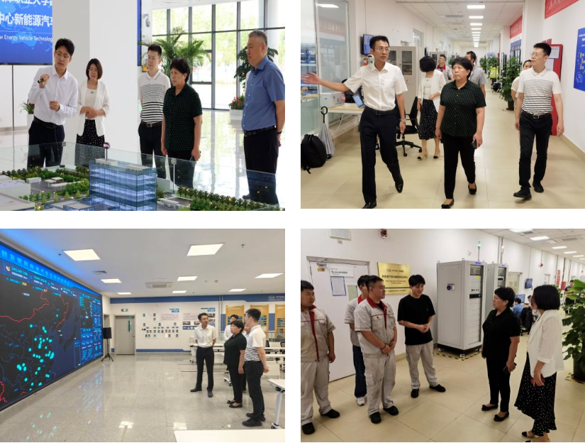 在新能源检验中心负责人的带领和讲解下,杨荣敏一行先后参观了电驱动总成、燃料电池、动力电池、电磁兼容等多个国内先进试验室,深入了解了新能源检验中心技术服务平台,近距离感受到新能源汽车科技创新成果。调研过程中,杨荣敏一行亲切看望了汽车工程学院2024届毕业生,并与同学们面对面交流。杨荣敏叮嘱同学们要珍惜在新能源检验中心这个大平台的工作机会,不断磨练专业技能,提高工作能力,在新的人生旅途中发光发亮。