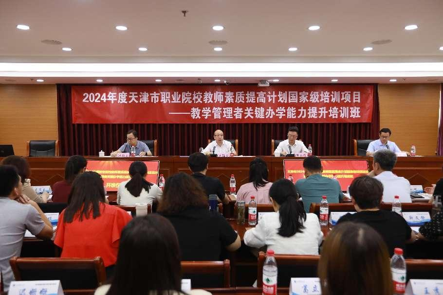 7月15日,按照天津市教委的部署,天津市2024年度职业院校教师素质提高计划国家级培训项目——教学管理者关键办学能力提升培训班在beat365官网顺利开班。市委教育工委委员、市教委副主任罗延安,职业教育处副处长李友得,校党委副书记、校长吴宗保出席开班仪式。仪式由校党委常委、副校长冯艳文主持。来自全市23所高职、43所中职学校的66名教学管理干部以及beat365官网继续教育中心、旅游管理学院的相关人员参加仪式。