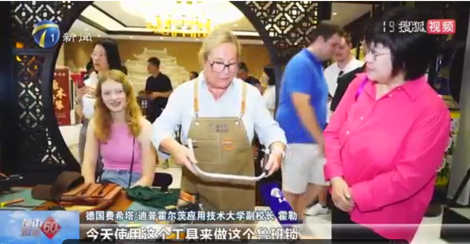 17日,艺术工程学院的领导和老师们与远道而来的德国大学生朋友们共同访问了北辰区榫卯结构技艺馆,了解了非遗家具榫卯制作技艺的历史渊源、文化内涵及制作工艺。在技艺馆,德国大学生们被一件件精美的传统家具所吸引,家具的每一个细节,尤其是那些精妙绝伦的榫卯结构,让他们惊叹不已。学生们还亲自参与了榫卯结构的制作体验,通过亲手操作,他们更加深刻地体会到了这项非遗传统技艺的精湛与复杂。