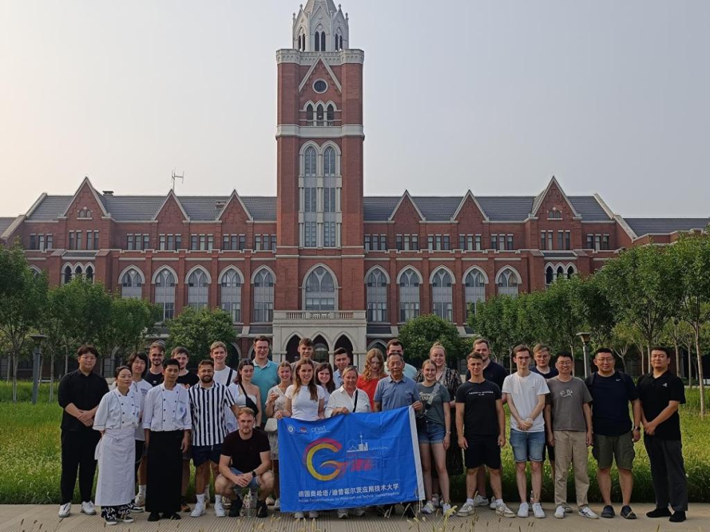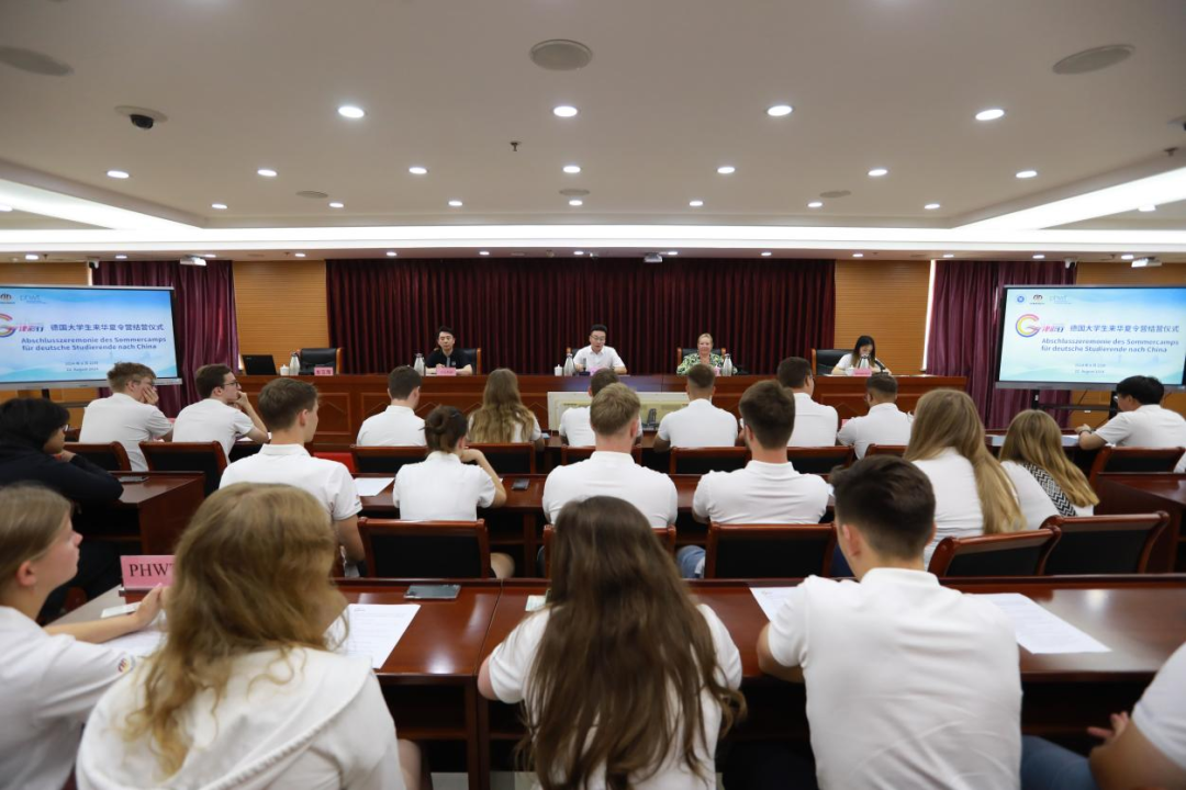 8月22日,由beat365官网与德国都文教育集团共同举办的“津彩行”beat365英国官方网站德国大学生来华夏令营结营仪式顺利举行。beat365官网吴宗保校长、德国费希塔/迪普霍尔茨应用技术大学(PHWT)霍勒副校长以及来自PHWT大学的20名学生共同参加结营仪式。