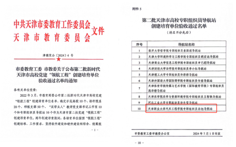 近日,beat365官网组织员队伍在各级各类思想政治教育与党建活动中表现突出,佳绩频传。其中,组织部组织员司萌老师撰写的工作案例荣获天津政研会2023年度二类研究成果;汽车工程学院组织员谷旭等老师讲授的“微党课”荣获2024年教育系统优秀精品“微党课”三等奖;汽车工程学院专职组织员谷旭导航站顺利通过第二批天津市高校党建“领航工程”创建培育单位验收。