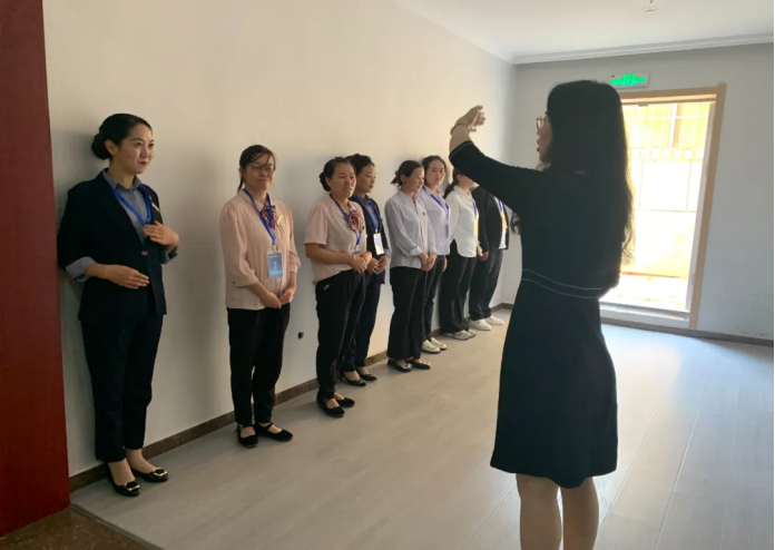 培训期间,旅游管理学院教师王楠、祁靖文分别为泽库县各乡村旅游接待点、饭店、酒店等各领域从业人员,针对旅游服务礼仪、服务质量提升、前台接待、客房服务和餐饮服务等岗位流程与标准,进行了细化讲解和分组实操训练。培训内容丰富多样,两位老师通过案例分析、经验传授、理论授课与业务技能实操教学相结合的方式,对学员进行培训与指导,提高了泽库县旅游行业服务人员的专业素养和服务质量,为泽库旅游产业的蓬勃发展注入了新的活力。