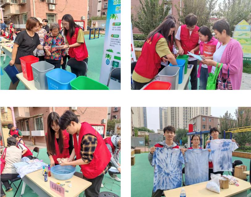 活动中,由生环学院师生志愿者组成的垃圾分类环保科普小分队、电信学院学生志愿者组成的家电维修服务小分队、包印学院学生志愿者组成的扎染非遗文化传播小分队各司其职,用温馨的话语和暖心的服务让居民和社区工作同志都感受到了天职师生良好的精神面貌,和扎实投入社区志愿服务的饱满热情。