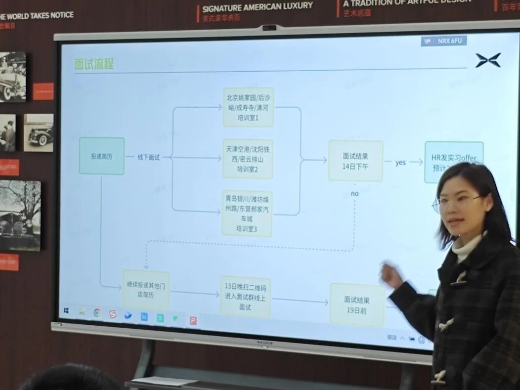 面试环节由小鹏汽车的人力资源部和技术支持部门负责,针对学生的专业知识、实际操作能力及团队合作精神等多方面进行了全面考察。对于参与双选会的学生来说,这不仅是一次求职的机会,更是一个展示自我实战演练的平台。学生们通过实际的面试过程,能够更清晰地认识到自身的不足和今后需要努力的方向。同时,小鹏汽车也通过这一过程发掘了具有潜力的优秀人才,为公司后续的人才储备奠定了基础。值得一提的是,此次双选会还特别注重了与企业的实时互动。通过现场设置的提问环节,学生们积极向企业代表提问,涉及职业发展规划、企业文化、技术发展趋势等多个方面,使得现场气氛活跃,互动频繁。