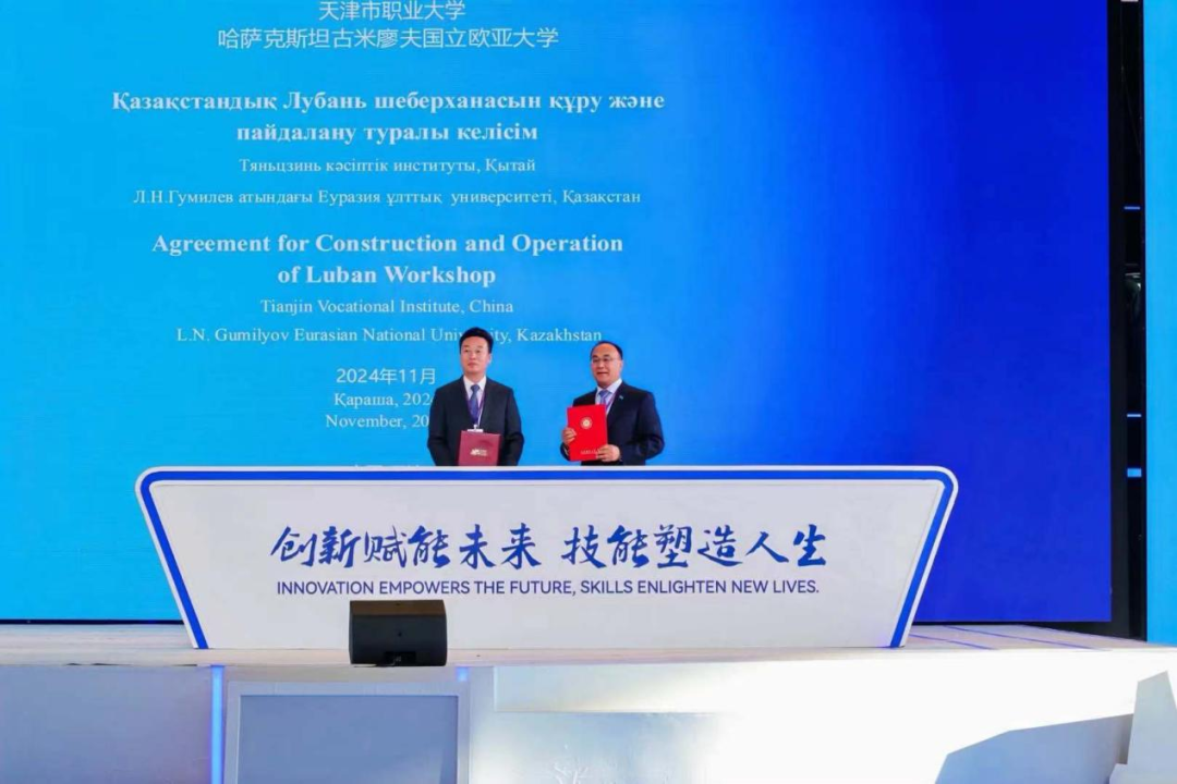 2024年7月3日,在访问哈萨克斯坦期间,国家主席习近平与哈萨克斯坦总统托卡耶夫在哈萨克斯坦首都阿斯塔纳举行会谈,共同见证教育部怀进鹏部长与哈萨克斯坦高等教育部部长努尔别克交换多项政府间、部门间合作文件,其中包括《天津市职业大学与古米廖夫欧亚国立大学鲁班工坊合作备忘录》。会谈后,习近平总书记在会见记者时强调,中方决定在哈萨克斯坦开设第二家鲁班工坊。