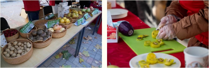此次展销会分为“农品推介、美食品鉴、为家乡代言”三个展区,提供产自蓟州当地50余种特色农副产品,同时准备各种水果蔬菜、特色食物供师生选购,为师生带来绿色健康、放心安全、味美质优的农特产品。在农品推介展区,各摊位师生络绎不绝,师生精心挑选心仪产品;在美食品鉴展区,通过现场制作美食供师生试吃,让师生了解农产品的口感、品质等方面的特点,从而喜欢蓟州特色美食;在家乡代言展区,通过一幅幅书画作品和文创作品,充分展示了蓟州区秀美景色。