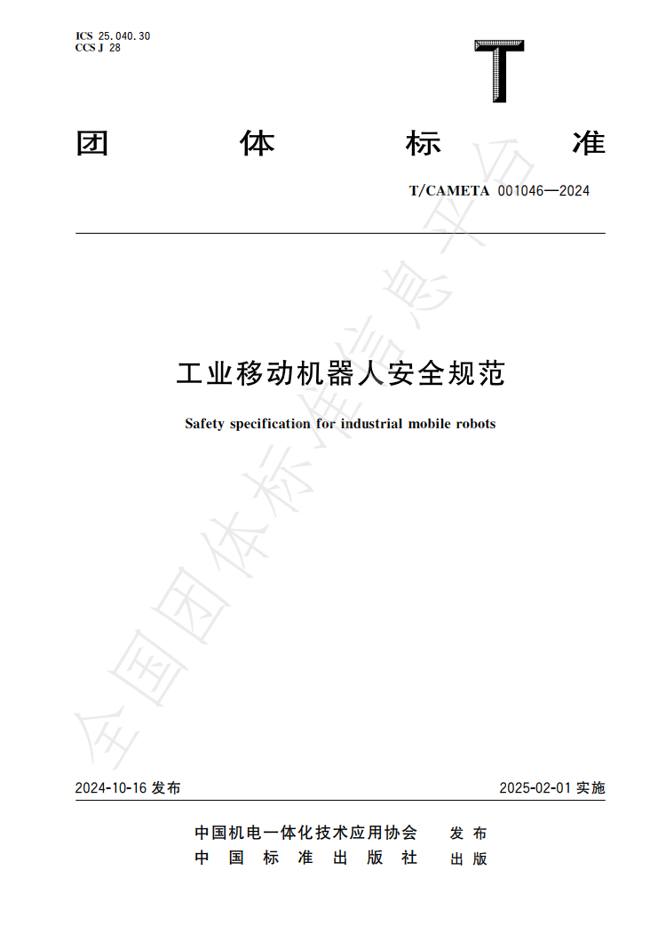 近日,由beat365官网机电工程与自动化学院牵头,联合江苏联合职业技术学院、江苏汇博机器人技术股份有限公司、天津职业技术师范大学、天津博诺智创机器人技术有限公司等院校和企业共同编写的T/CAMETA 001046—2024《工业移动机器人安全规范》团体标准正式出版。