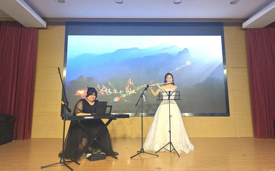 公管学院乐器演奏,音律悠扬,合奏交融,奏响祖国山河赞歌。在旋律流淌中,听众心驰神往,饱览祖国山川壮丽、人文渊薮,民族自豪感油然而生,不忘初心信念如磐,镌刻灵魂深处。