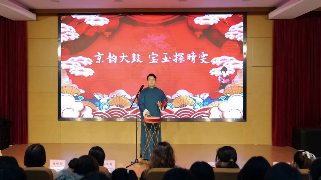 公管学院曲艺表演粉墨登场,轻启戏曲艺术绮窗。水袖漫舞似云卷云舒,唱腔婉转如莺啼花间,演员眉眼盈盈传深情,举手投足皆入戏。于《宝玉探晴雯》的悲欢离合里,品古典文学韵致、咂摸戏曲文化醇厚,传统美学意趣悄然沁心,唤醒文化传承自觉,赓续民族艺术血脉。
