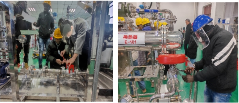 娜仁博士开展化工安全生产管理 —— 盲板抽堵特殊作业操作讲解和演示。留学生们专注地观看操作流程,积极参与互动,通过实际操作锻炼基本技能,提高发现和解决问题的能力。通过学习他们深刻认识到安全生产在化工领域的重要性,纷纷表示将把所学知识牢记心中,为未来的学习和工作筑牢安全防线。