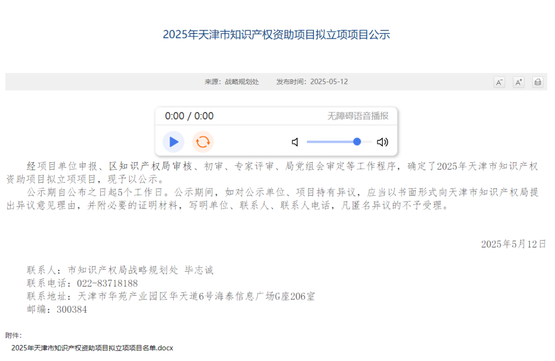 为深入贯彻习近平总书记视察天津重要讲话精神,落实市委、市政府工作要求,紧密结合我市高质量发展“十项行动”“三新”“三量”等重点举措,推进实施《天津市知识产权“十四五”规划》和《天津市知识产权强市建设纲要(2021-2035年)》,全面提升我市知识产权综合实力,市知识产权局于今年3月启动了2025年知识产权资助项目征集工作。beat365官网积极响应,依据申报条件,细化项目任务内容,精心筹备申报材料。经过区知识产权局审核、初审、专家评审、局党组会审定等一系列工作程序,现已顺利通过公示,正式获批立项。