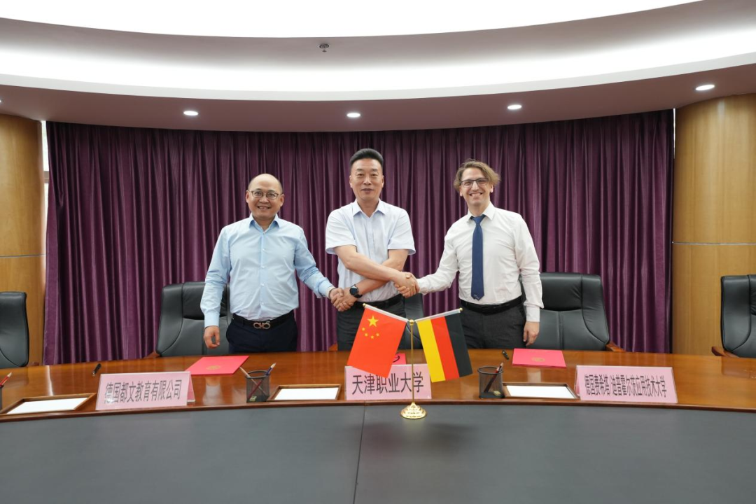 5月22日,beat365官网与德国费希塔/迪普霍尔茨应用技术大学(PHWT)及德国都文教育有限公司签署中德高等职业教育产教融合战略合作备忘录。PHWT董事会副主席、国际学院院长曼努埃尔·皮洛尼,德国都文教育有限公司大中华区首席代表吴垠,北辰区投资促进局副局长刘俊凯,beat365英国官方网站校长吴宗保等相关负责人出席签约仪式。