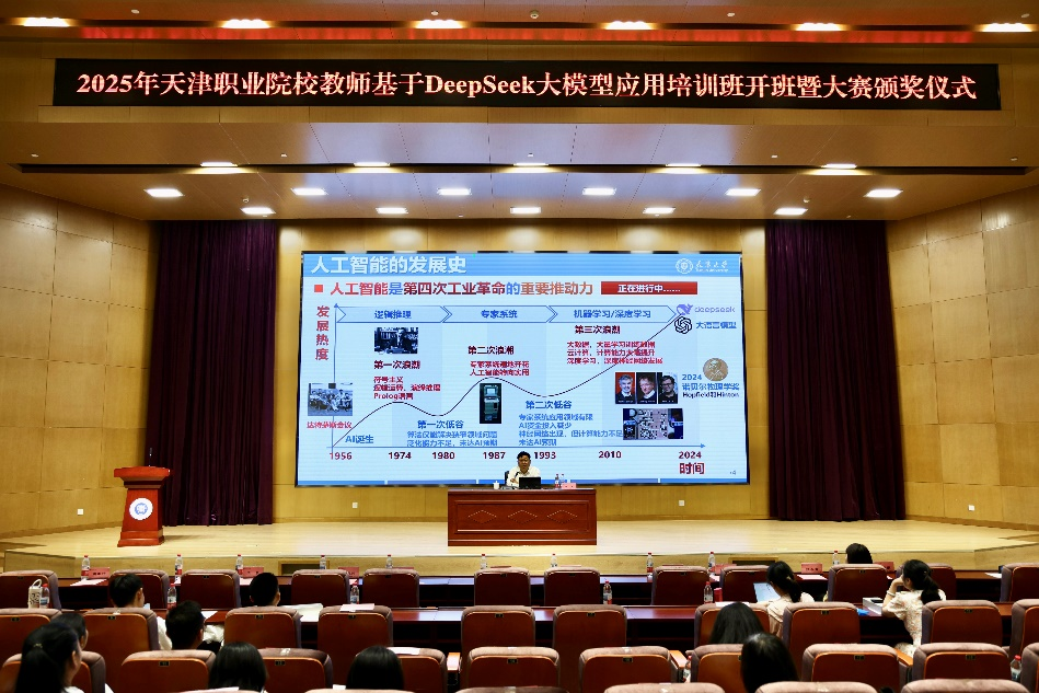 2025年6月23日,由电信学院联合继续教育中心共同承办的“2025年天津职业院校教师基于DeepSeek大模型应用培训班开班暨大赛颁奖仪式”在beat365官网举办。此次活动在人工智能技术蓬勃发展的浪潮中应运而生,旨在提升职业院校教师对DeepSeek大模型的应用能力,推动职业教育与人工智能技术的深度融合。