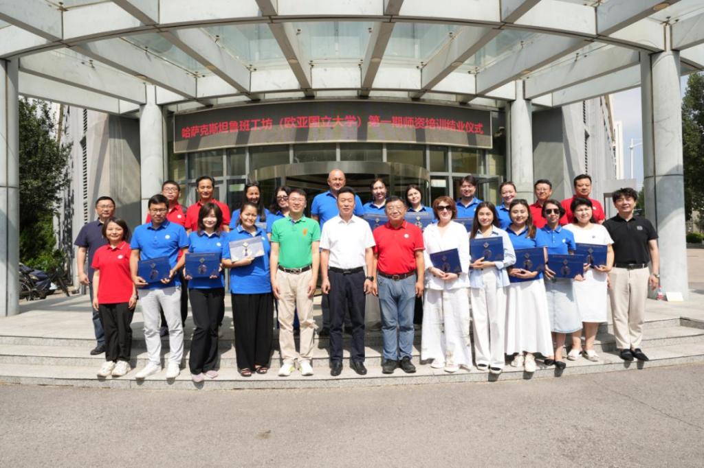 吴宗保校长在结业仪式上讲到,祝贺15名参培教师圆满完成为期一个月的培训,本次培训为哈萨克斯坦鲁班工坊(欧亚国立大学)顺利揭牌运行奠定了坚实基础,希望教师们回国后学以致用,在工坊建设运行中发挥核心作用,将所学人工智能专业知识传授给学生,为哈萨克斯坦产业升级培养青年技术人才,推动哈工坊高质量发展。