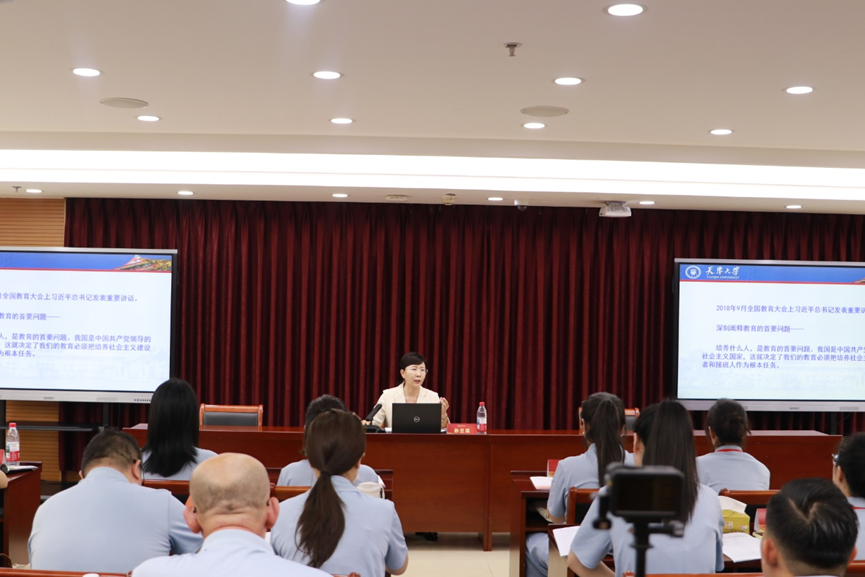 开班首日,天津大学讲席教授、国家教学名师孙兰英教授以“思政课铸魂育人的根本遵循”为题为培训班学员进行了首场讲座。带领学员重温了习近平总书记对思政课教师的“六要”,对思政课教学改革的“八个相统一”,并强调“大思政课”应当立足于“两个大局”的大视野,构建多元联动,协同创新的大机制。