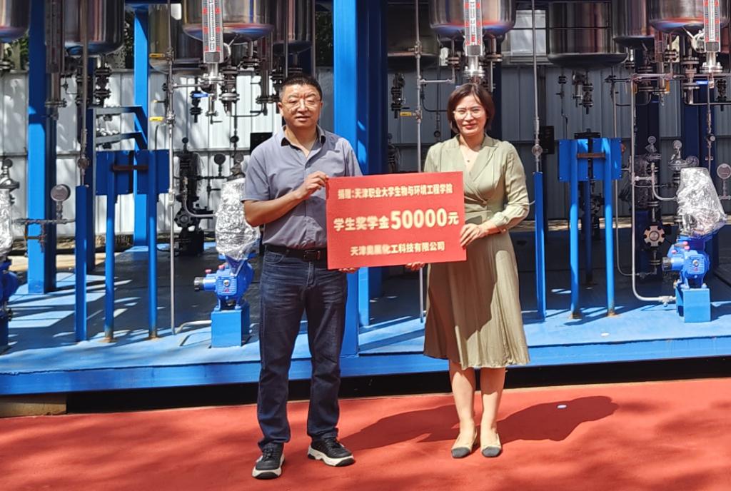 活动中,校企双方领导共同启动“智能催化材料合成与精制系统”装车仪式,天津奥展化工科技有限公司向学校捐赠奖学金5万元,定向支持生环学院学生笃学精技、报效祖国。此外,在企业实习表现优异的学生和科技特派员在活动中受到表彰,展现了校企共育人才的丰硕成果。