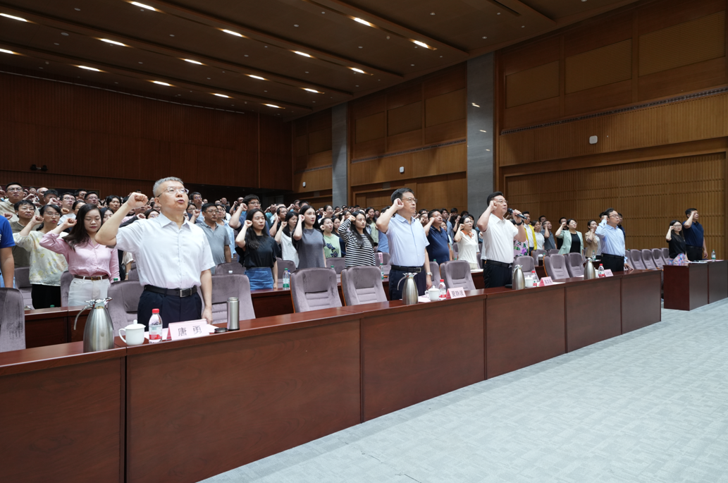 大会在庄严的国歌声中开始。校党委副书记、校长吴宗保带领全体教师重温教师誓词,并作人才工作报告。报告强调要坚持人才引领发展,践行“引育并举、分类卓越”理念,健全“引育用留”全链条工作机制,持续优化人才发展生态,营造近悦远来、人尽其才的良好环境,为实现学校高质量发展提供坚实人才支撑。