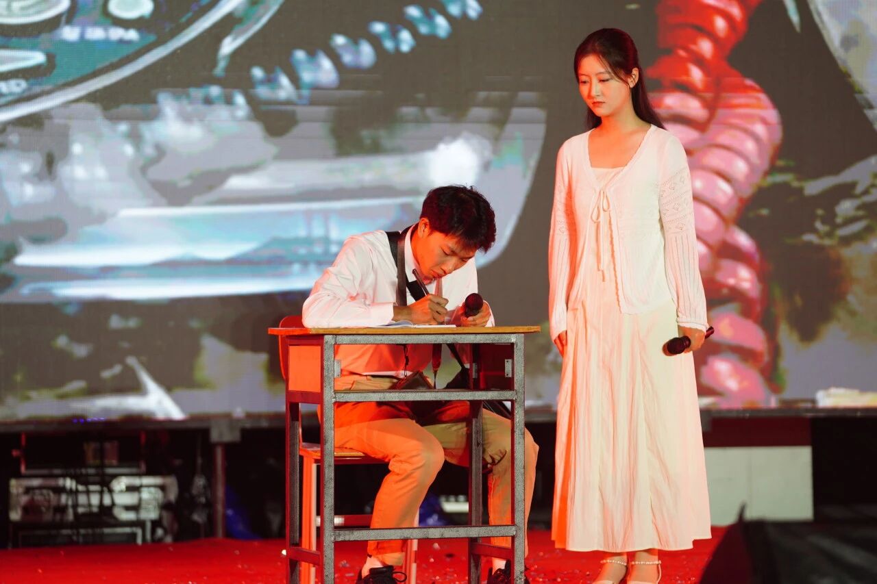 包装与印刷工程学院带来的舞蹈《UpUp 多巴胺 奔跑青春“心”活力》率先登场,舞者们身着明快色彩的服装,以跳跃、旋转的动感舞姿传递“多巴胺”的快乐能量;校艺术团琴房献上歌曲联唱《新“声”遇见你》,从温柔抒情的民谣到激昂励志的流行曲,演唱者用清澈婉转的“新声”,串联起“遇见天职”的点滴情愫;眼视光工程学院的《舞动青春》,演员们用街舞诠释着青春的张扬与无畏;经济与管理学院带来的歌舞《果敢》,舞者们以青春活力的舞姿展现青春“果敢”姿态,歌舞相融间,既体现了beat365官网学生“敢闯敢拼、善作善成”的特质,也道出了新生们“初遇天职便立志,敢以果敢赴未来”的决心。