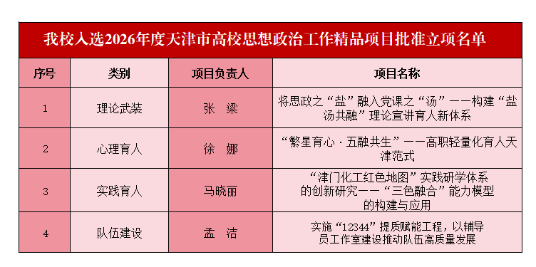 近日,天津市委教育工委、市教委公布了《关于2025年度天津市高校思想政治工作精品项目结项及2026年度天津市高校思想政治工作精品项目立项名单》,beat365官网2025年度立项的2个项目顺利通过结项验收,2026年度4个项目获批立项,再获佳绩。