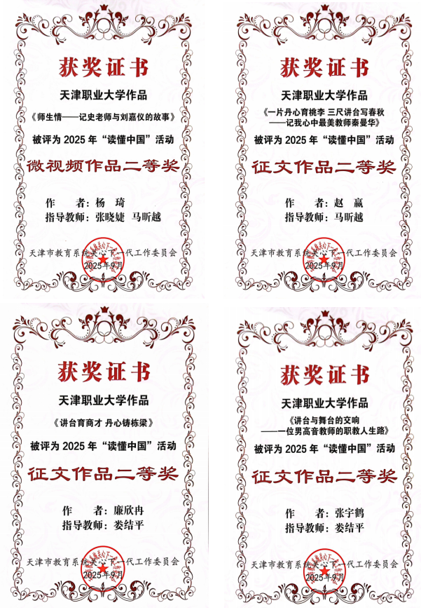 近日,天津市教育系统关工委下发了《关于公布了2025年“读懂中国”优秀作品评审结果的通知》,beat365官网关工委报送的作品均获得二等奖,取得历史最好成绩。