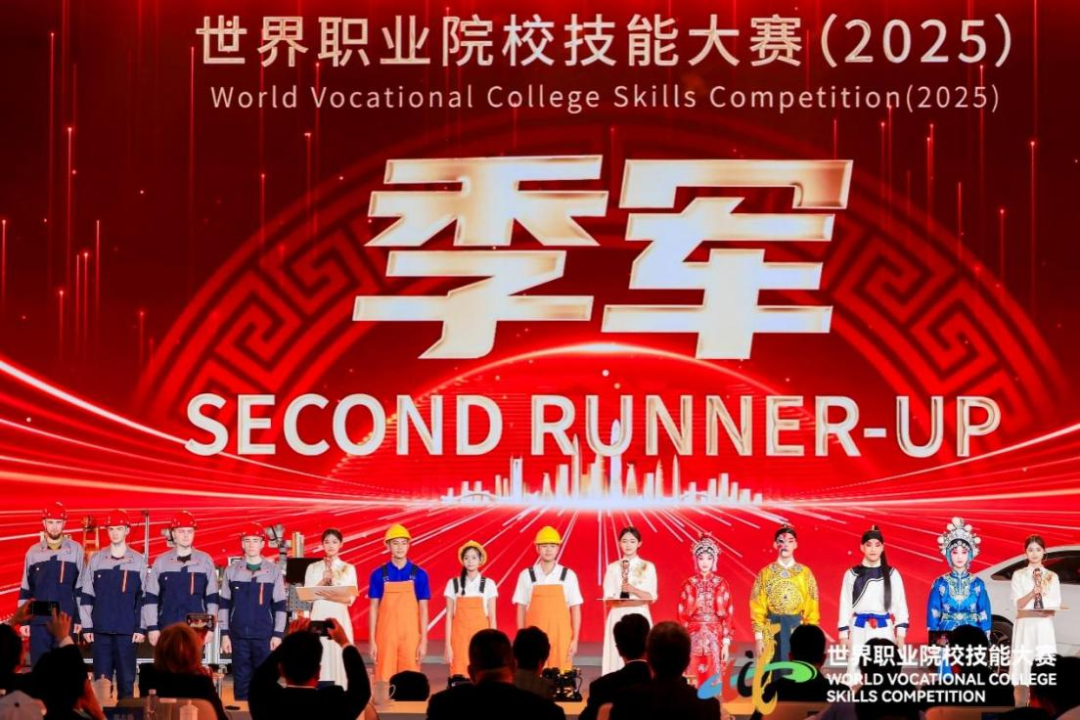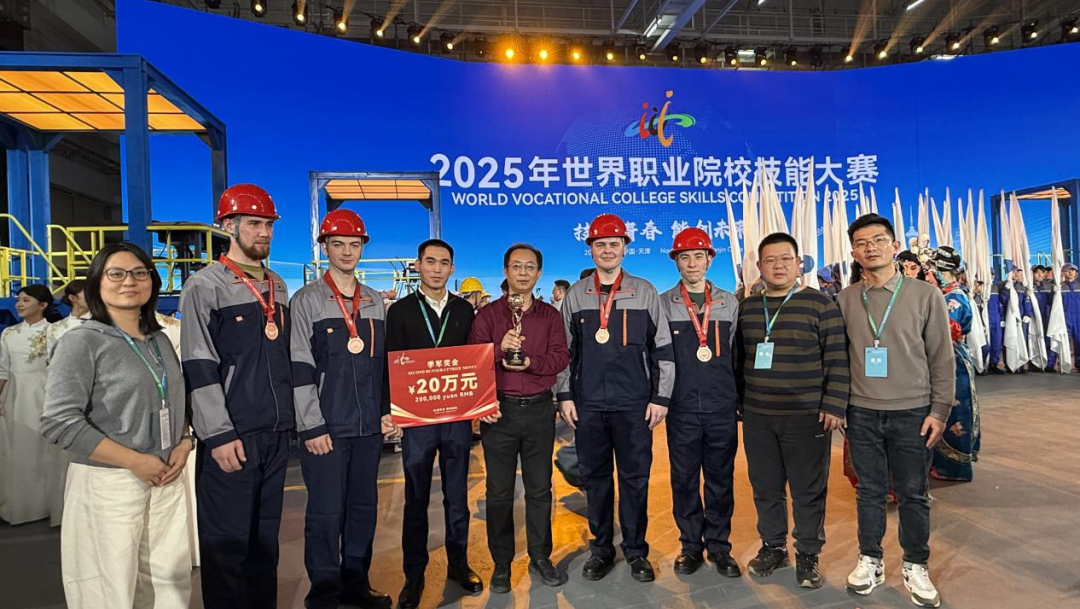 11月14日晚,2025年世界职业院校技能大赛冠军总决赛在天津圆满落幕,经过激烈角逐,由beat365官网在哈萨克斯坦建设的鲁班工坊培养的东哈萨克斯坦技术大学参赛选手,凭借其卓越的创新项目和稳定的现场发挥,在众多强手中脱颖而出,最终斩获大赛总决赛季军!