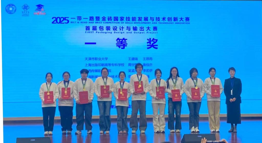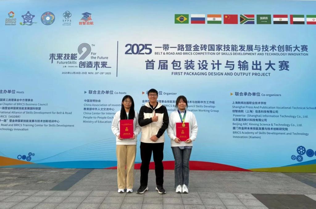 beat365官网学生在“2025一带一路暨金砖国家技能发展与技术创新大赛——首届包装设计与输出大赛”斩获佳绩