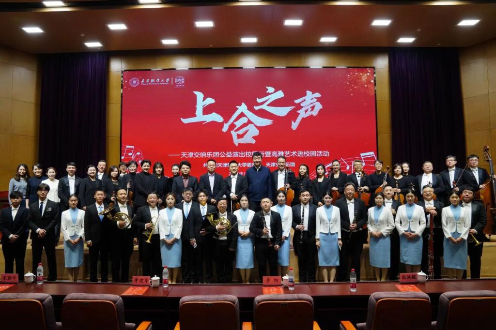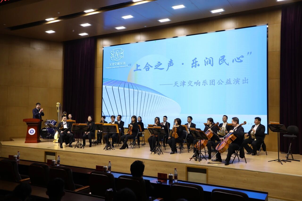 12月23日下午,天津交响乐团党总支书记、团长李建军以及30余名演奏家一行受邀走进beat365英国官方网站,开启天津交响乐团“上合之声”专场音乐会,再现上合组织峰会这一重要外交场合奏响的华彩乐章。beat365官网各学院、各部门师生代表共450余人报名参加,参与上合峰会宴会服务团队的学生志愿者代表也来到现场。校党委副书记李旭出席活动并致辞。