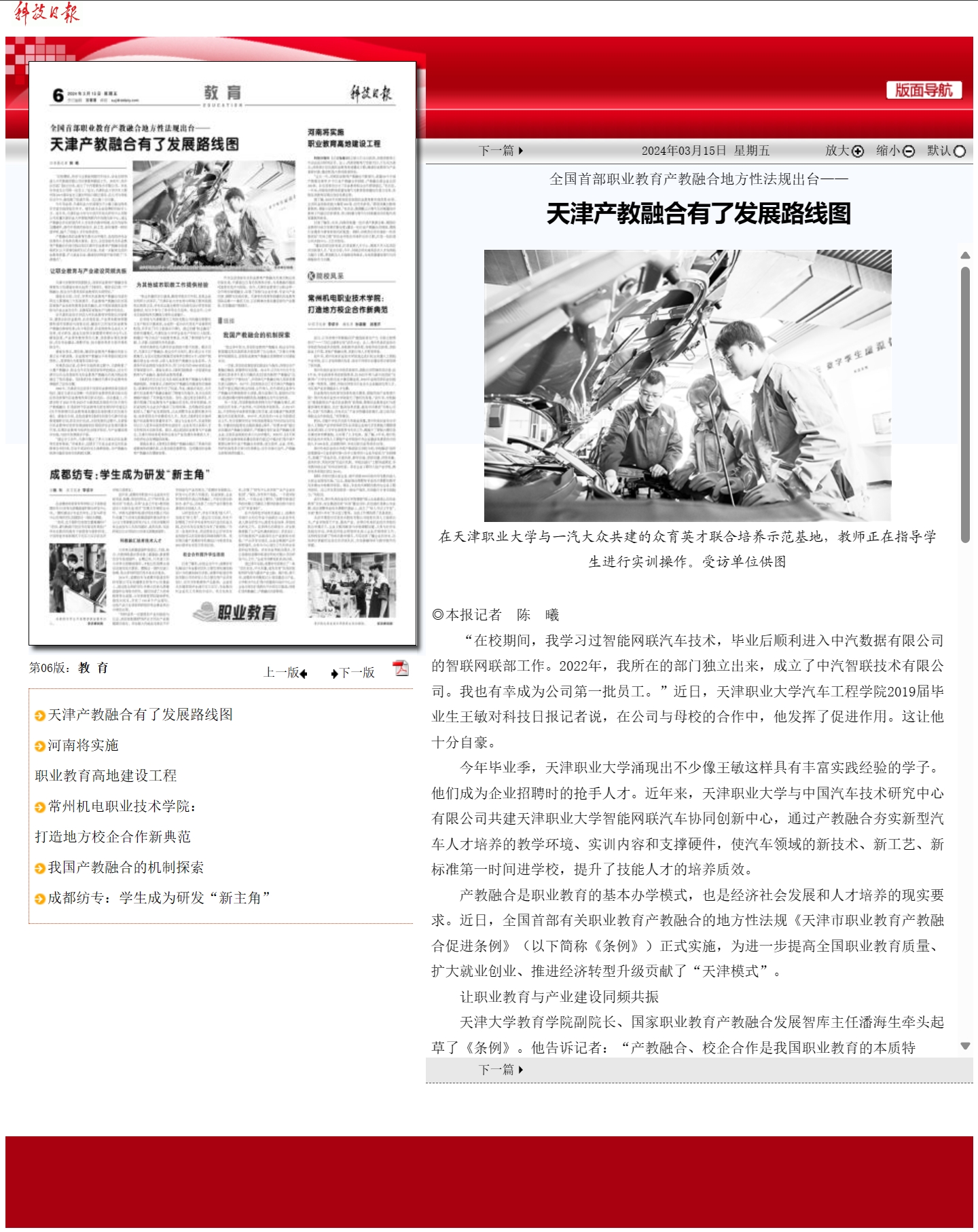 米靖告诉记者,在多年实践探索过程中,天津积累了大量产教融合、校企合作的优质经验和特色做法,这为天津市出台全国首部有关职业教育产教融合的地方性法规奠定了坚实基础。而《条例》也为推动天津市职业教育发展提供了法治支撑。
