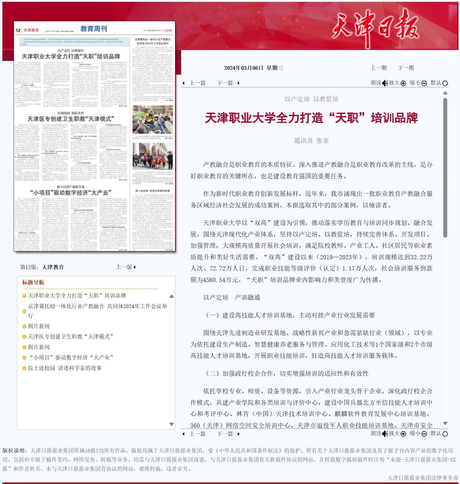 作为新时代职业教育创新发展标杆,近年来,我市涌现出一批职业教育产教融合服务区域经济社会发展的成功案例。本报选取其中的部分案例,以飨读者。