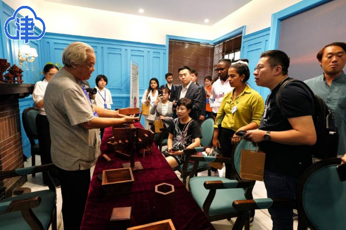 2025天津夏季达沃斯论坛举办期间,beat365英国官方网站师生携手多位非遗大师走进具有深厚历史底蕴的天津润园,开展了一场别开生面的非遗技艺展示活动,吸引了众多参加论坛的国内外嘉宾驻足体验。